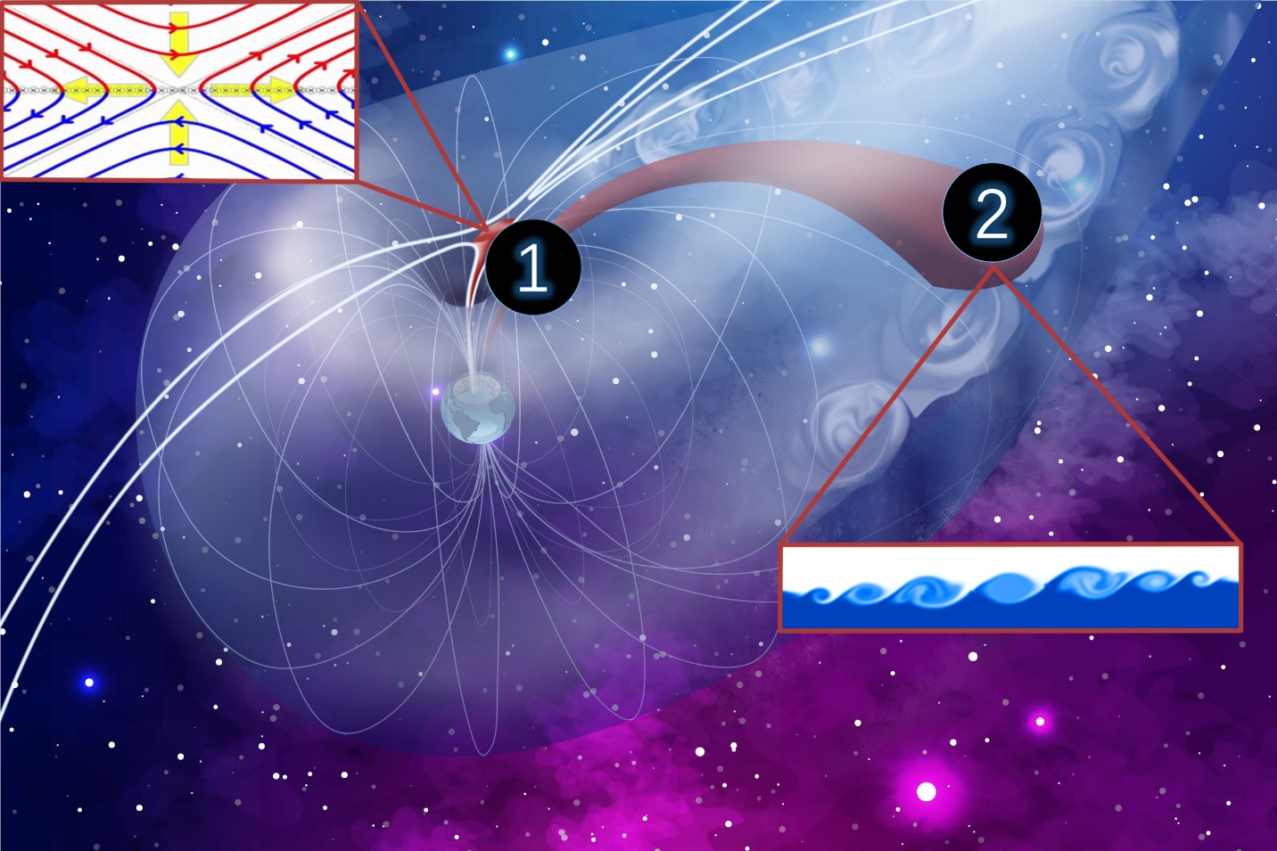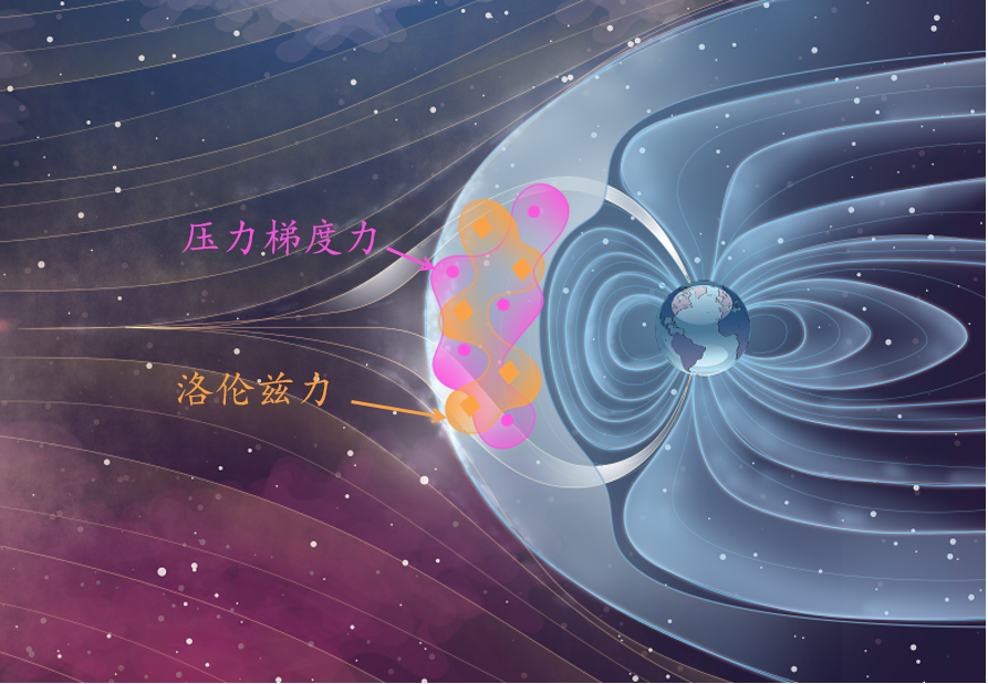 行星际磁场需要穿过磁鞘区与地球磁场发生重联,因此穿过磁鞘的磁通量多少决定了磁重联的强度。磁鞘中存在两种作用力相互“竞争”:洛伦兹力(与磁鞘的磁场强度正相关)与压力梯度力(与磁鞘的粒子密度正相关)。太阳风密度可以通过调节磁鞘中的主导作用力,来影响穿过磁鞘的磁通量,从而影响重联强度。