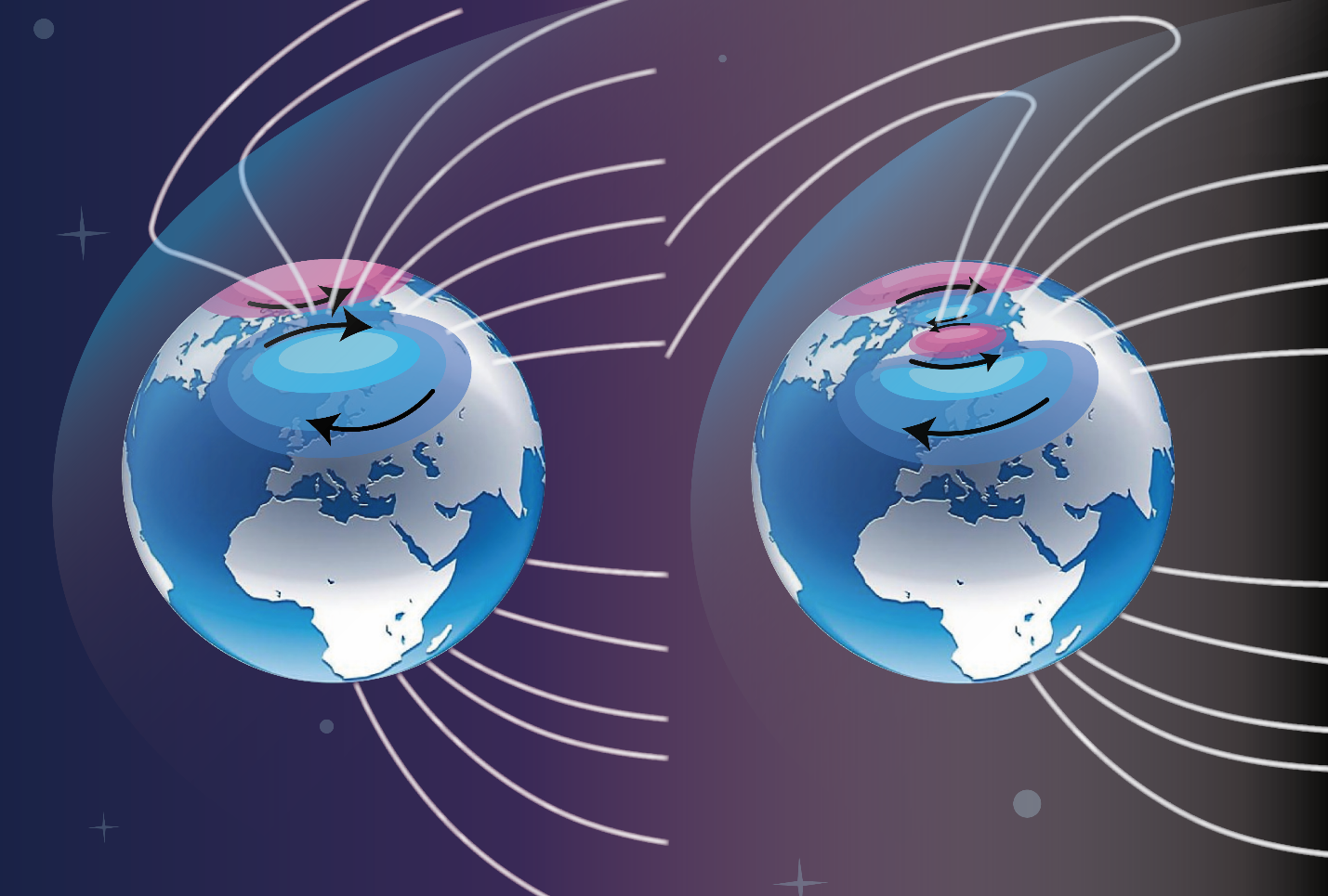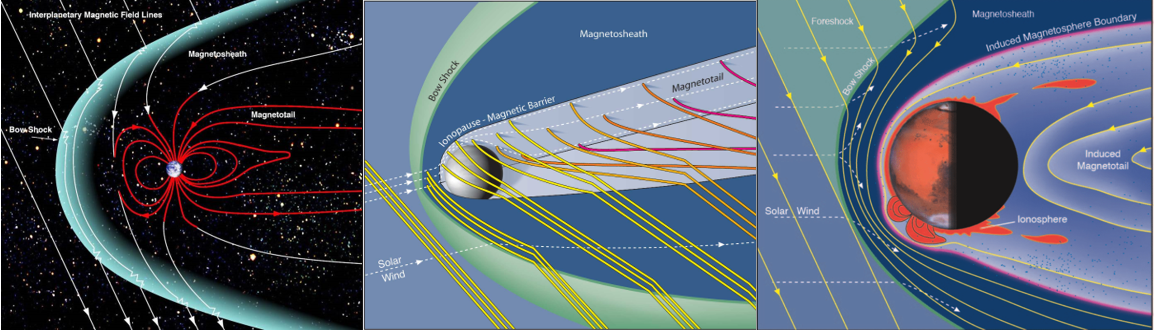 许多类地行星如金星、火星等也存在着电离层-磁层耦合系统,但这些行星的磁场结构比地球更为复杂。例如,地球的磁场为偶极场;金星的磁层来源于电离层与太阳风相互作用时产生的感应磁场;火星存在由星体内部结构而产生的固有磁场。通过对地球偶极磁场下太阳风-电离层-磁层耦合过程的研究,将有助于认识不同行星磁场在太阳风作用下的演化情况。